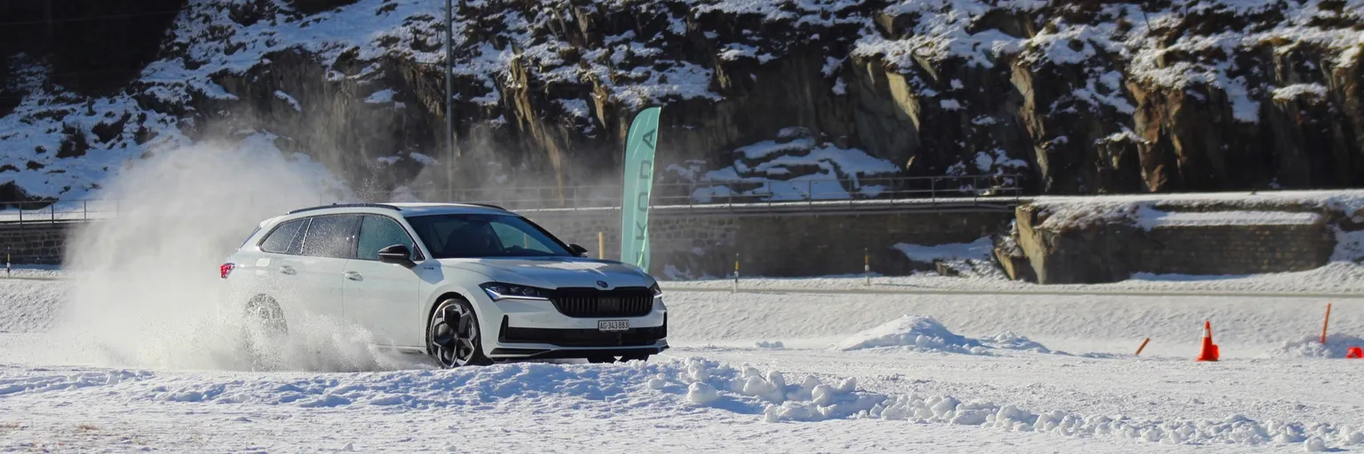 Erleben Sie Ihren Škoda auf schneebedeckten Pisten und setzen Sie die Grenzen Ihres Fahrkönnens neu.